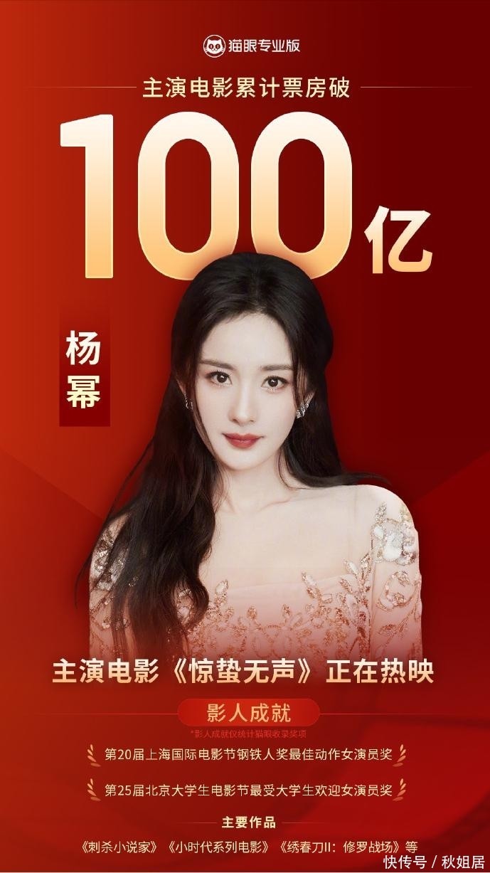 目前位列中国女演员影史总票房榜第八位!